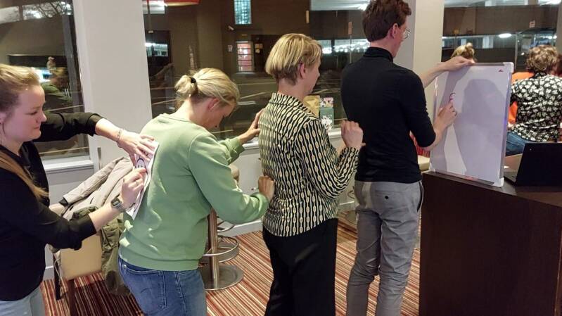 Het eerste deel van de middag stond in teken van alle data bij elkaar brengen. In de verschillende deelgroepen wordt er hard gewerkt aan het beantwoorden van de deelvragen. Als afsluiter van dit gedeelte deden wij een groepsreflectie. Daar later meer over.